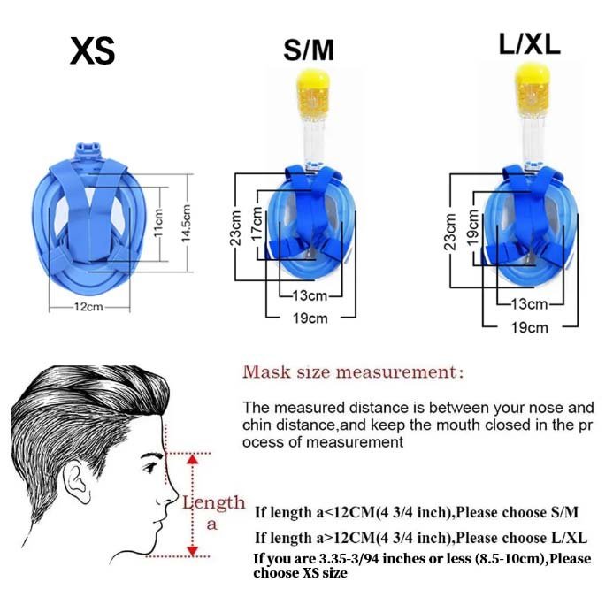 Obwohl man das Gegenteil vermuten könnte, ist der obere Teil des Maskenschnorchels höher über der Oberfläche als bei klassischen Schnorcheln. Ein klassischer Schnorchel sieht länger aus, weil er aus dem Mund führt und nicht wie eine Maske aus dem Kopf. Damit der Schnorchel alle notwendigen Standards erfüllt, ist eine Verlängerung nicht möglich.